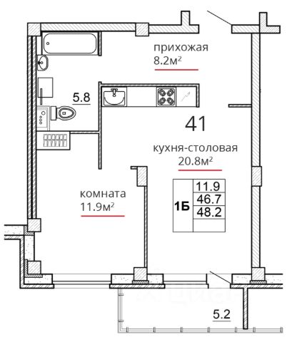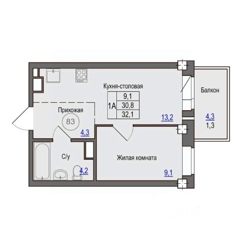 • ✅ Минимальная площадь: 32,1 м²