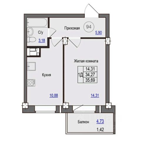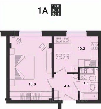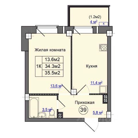 Площадь: 39.8 кв. м. Раздельный санузел (ванна - 3 кв.м. и туалет отдельно - 1.6 кв.м.), просторная кухня 9,8 кв. м.