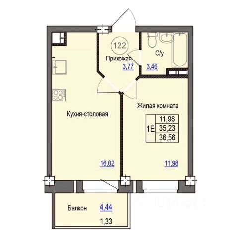 Продаётся 1-комнатная квартира в строящемся доме (Дом 32 (2 этап)), срок сдачи: III-кв. 2026, общей площадью 35.84 кв.м., на 7 этаже. Строительство многоквартирных жилых домов на улице Юности.