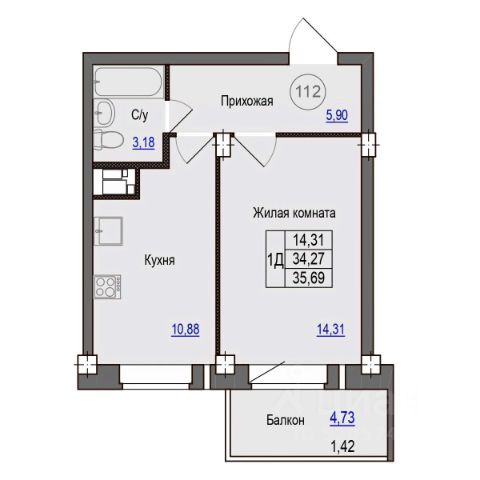 В монолитно-кирпичном доме 14 расположено 112 квартир с улучшенными планировками. Площадь однокомнатных квартир от 49 кв.м., двухкомнатных - от 68 кв.м., трехкомнатных - от 93 кв.м.