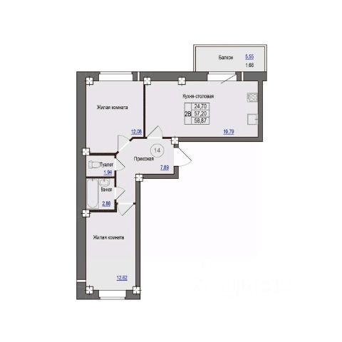 Общая фактическая площадь квартиры вместе с балконом 55м2.