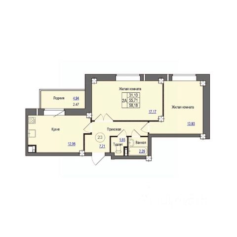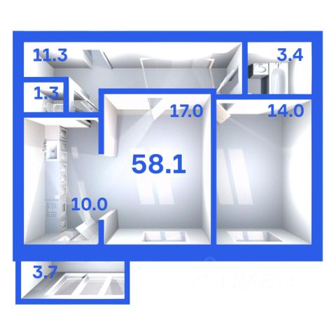Продаётся 2-комнатная квартира в строящемся доме (Дом 3), срок сдачи: I-кв. 2028, общей площадью 58.1 кв.м., на 4 этаже. Расположение, транспортная доступность