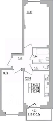 Продаётся 2-комнатная квартира в строящемся доме (Дом 32 (2 этап)), срок сдачи: III-кв. 2026, общей площадью 56.76 кв.м., на 10 этаже. Строительство многоквартирных жилых домов на улице Юности.