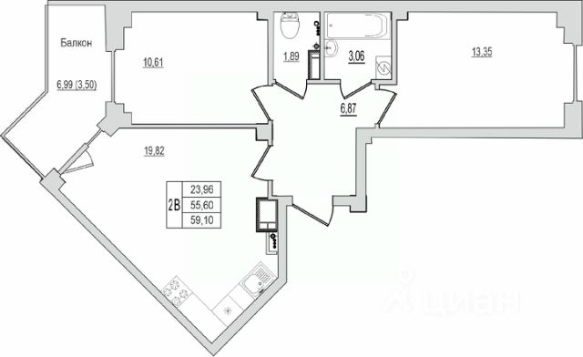 Продаётся 2-комнатная квартира в строящемся доме (Дом 1), срок сдачи: IV-кв. 2026, общей площадью 59.58 кв.м., на 10 этаже. Новый жилой комплекс "Семь сезонов" от застройщика "ЛУГ"