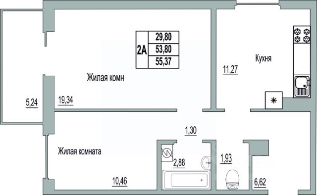 Продаётся 2-комнатная квартира в сданном доме (Дом 89), срок сдачи: III-кв. 2025, общей площадью 55.37 кв.м., на 9 этаже. Строительство многоквартирных жилых домов на улице Юности.