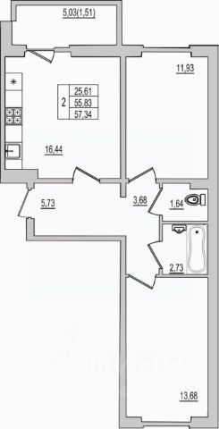 Продаётся 2-комнатная квартира в строящемся доме (Дом 94Д), срок сдачи: III-кв. 2027, общей площадью 57.34 кв.м., на 10 этаже. Новый жилой комплекс "Семь сезонов" от застройщика "ЛУГ"