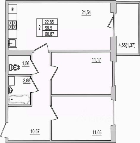 58 868 ₽/м²