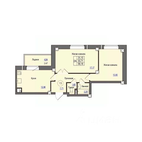 Продаётся 2-комнатная квартира в строящемся доме (Дом 3), срок сдачи: I-кв. 2028, общей площадью 58.1 кв.м., на 4 этаже. Расположение, транспортная доступность