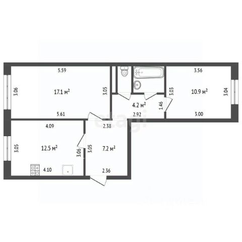 Предлагается к продаже двухкомнатная квартира в кирпичном доме, S=56.3 м.кв, кухня 11,6 м.кв. две комнаты (17+12)м.кв., две лоджии, с/у раздельный, квартира не стандартной планировки, требует ремонта, один взрослый собственник, свободна от личных вещей, регистрации и проживания.
