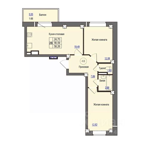 Продаётся 2-комнатная квартира в строящемся доме (Дом 3), срок сдачи: I-кв. 2028, общей площадью 58.1 кв.м., на 2 этаже. Расположение, транспортная доступность