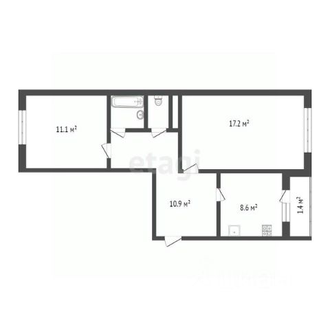 3 раздельные комнаты (16 + 15 + 12,5 м²).