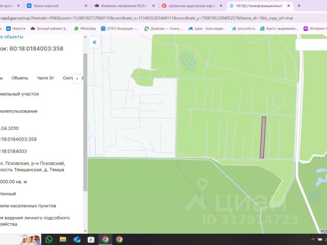 лучше писать ,.можно звонить, 12 км от Леруа Мерлен на рижском , только по 2 ГИС показывает деревня дворец д11 хороший торг, продается часть участка , площадь примерная. Межевание можно произвести по договоренности кадастровый номер 60180060401:30 смотрите фото. ЛУЧШЕ ЗВОНИТЬ можно и писать, торг Продается участок под дачу в поселке Усадище Печорского района.