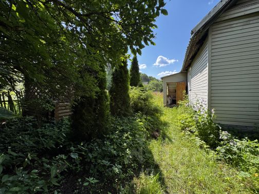 На участке построена почти новая баня(сруб из дерева, крепкие толстые бревна)!