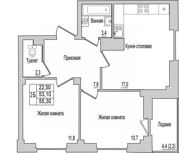 Продаётся 2-комнатная квартира в строящемся доме (Дом 32 (1 этап)), срок сдачи: IV-кв. 2025, общей площадью 53.25 кв.м., на 10 этаже. Строительство многоквартирных жилых домов на улице Юности.