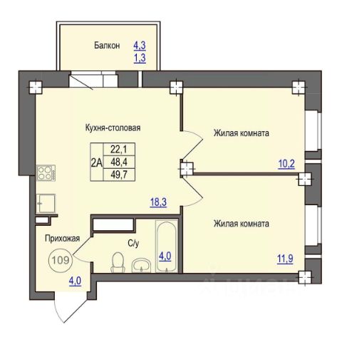 В двухсекционном доме 20А расположено 90 квартир: 36 однокомнатных,