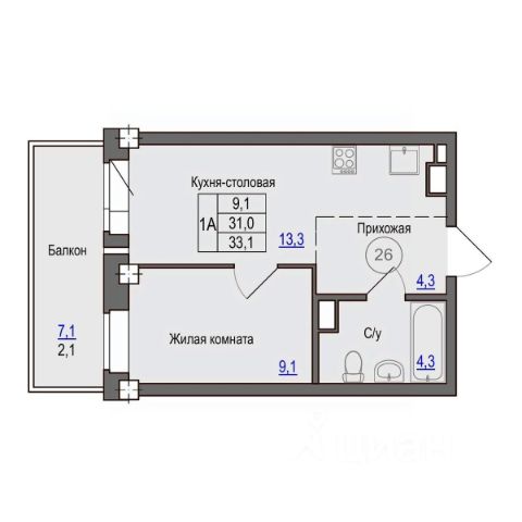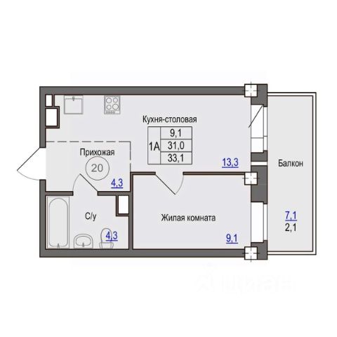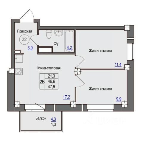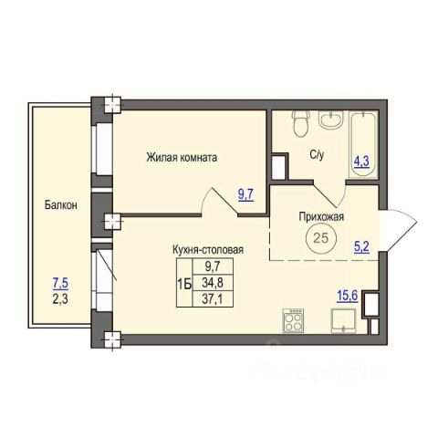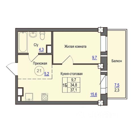Площадь: 39.8 кв. м. Раздельный санузел (ванна - 3 кв.м. и туалет отдельно - 1.6 кв.м.), просторная кухня 9,8 кв. м.