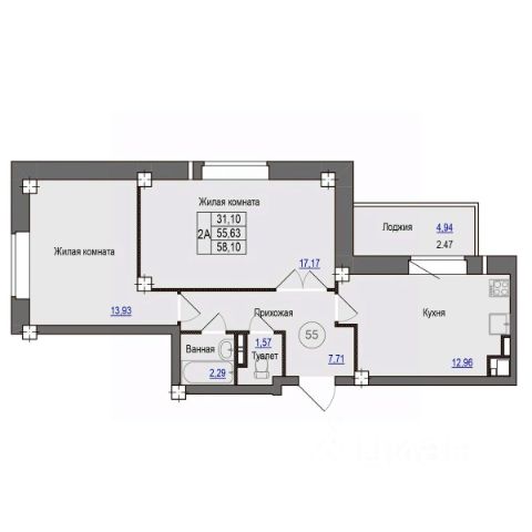 Продаётся 2-комнатная квартира в строящемся доме (Дом 3), срок сдачи: I-кв. 2028, общей площадью 58.1 кв.м., на 2 этаже. Расположение, транспортная доступность