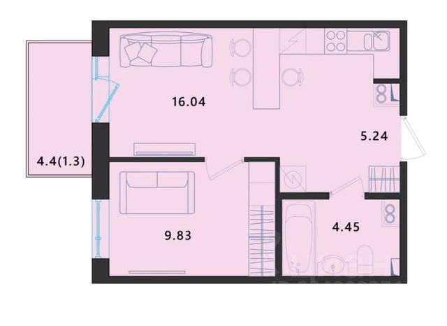 Общая фактическая площадь квартиры вместе с балконом 55м2.
