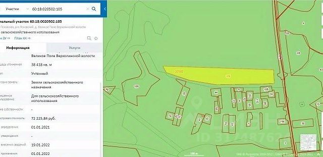 Продается земельный участок жилого/сельхоз назначения (1/2 часть большой территории, 2ЗУ2) 3261 кв/м по кадастровому паспорту (+-29 кв/м) - 32 сотки. Псковская область, расположен неподалеку от поселения Струги Красные, деревня Ждани. Не использовался около 4х лет, в данный момент находится в заброшенном состоянии, 3 подъезда со всех сторон, имеется вручную прокопанный колодец рядом с участком Торг уместен.