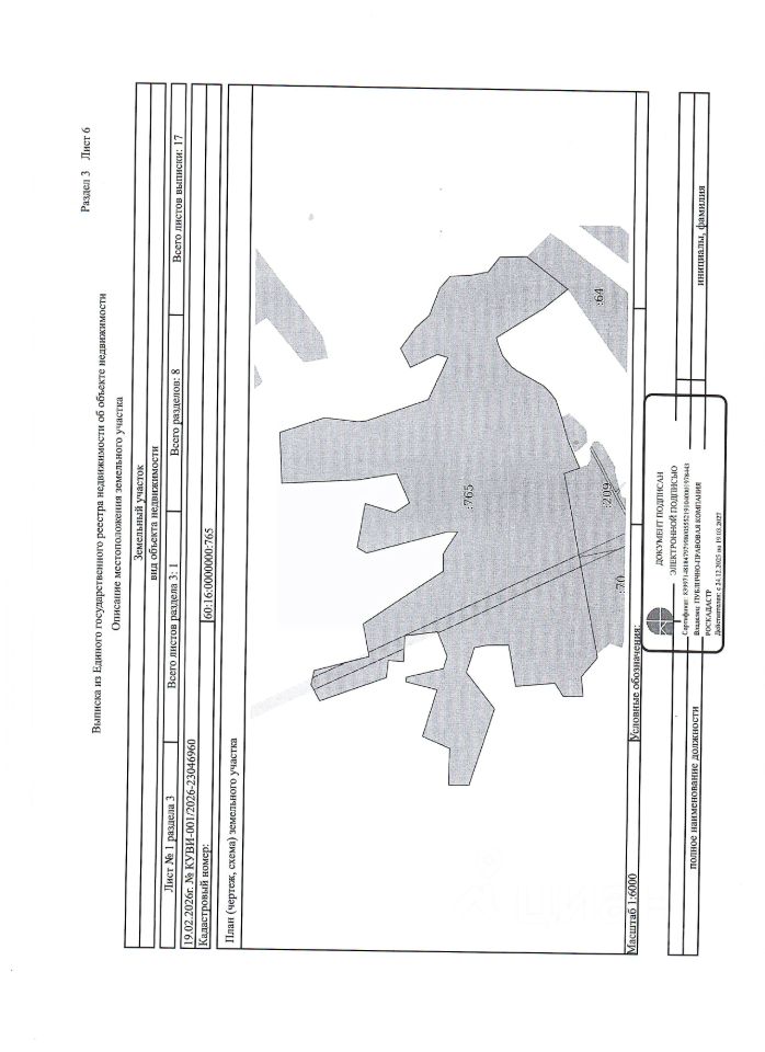 Земельный участок из земель сельскохозяйственного назначения, с кадастровым номером 60:16:0000000:765, площадью 257176 кв.м., местоположение: Псковская область, Плюсский муниципальный округ, ориентировочно в 0,1 км севернее от д.Окрино, вид разрешенного использования — для сельскохозяйственного производства.