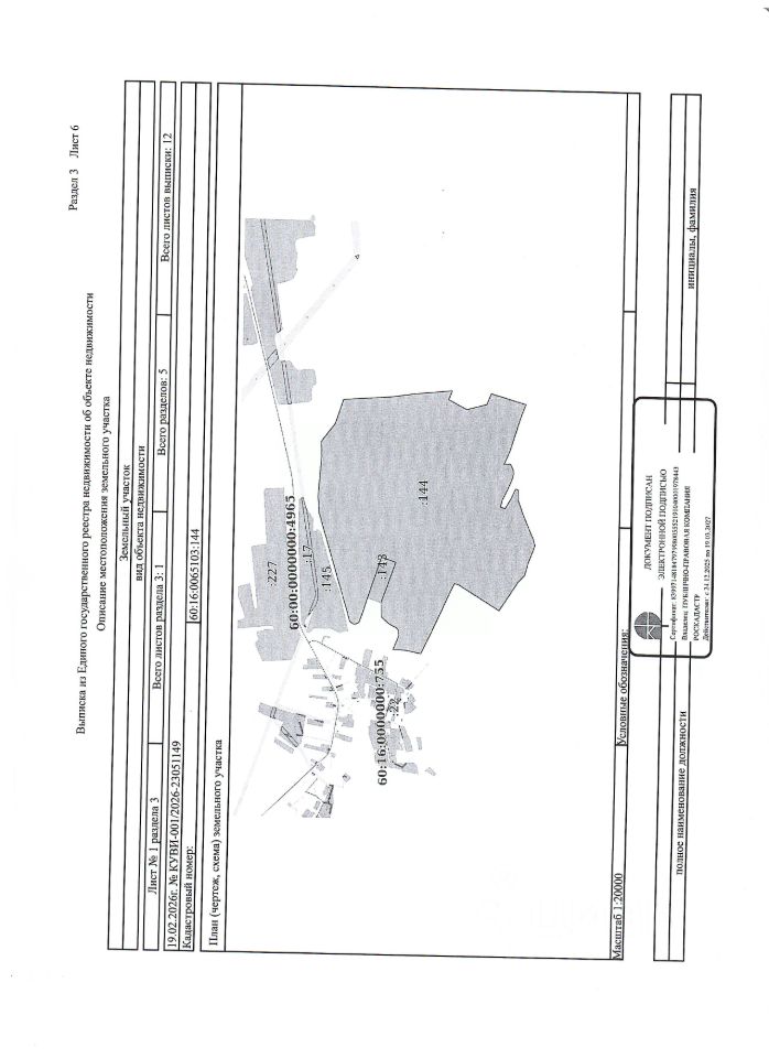 Земельный участок из земель сельскохозяйственного назначения, с кадастровым номером 60:16:0065103:144, площадью 1509717 кв.м., местоположение: Псковская область, Плюсский муниципальный округ, АОЗТ "Ляды", возле д. Заруденье, вид разрешенного использования — для сельскохозяйственного производства.