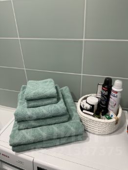 В ванной комнате есть всё необходимое: стиральная машина, порошок для стирки, полотенца, фен, шампунь и бальзам для волос, гель для душа, разовые зубная щетка и паста и другие важные мелочи.