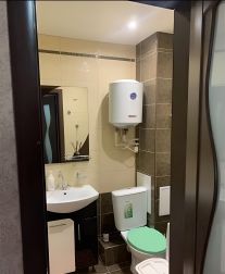 Вся мебель: просторных два дивана, встроенный шкаф, стенка, постельные принадлежности, основная посуда, гладильная доска, сушилка для белья.