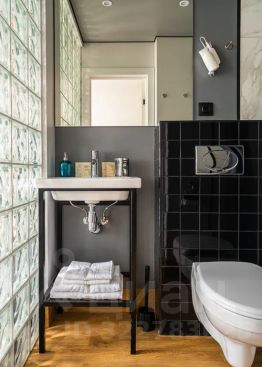 В ванной комнате: душ, туалет, раковина, полотенца, туалетно-косметические принадлежности, фен.