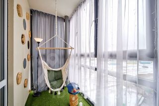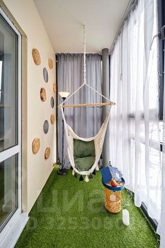 На балконе - зона релаксации: подвесное кресло-качели и журнальный столик, чтобы вы могли попить чай с видом на памятник Александру Невскому.