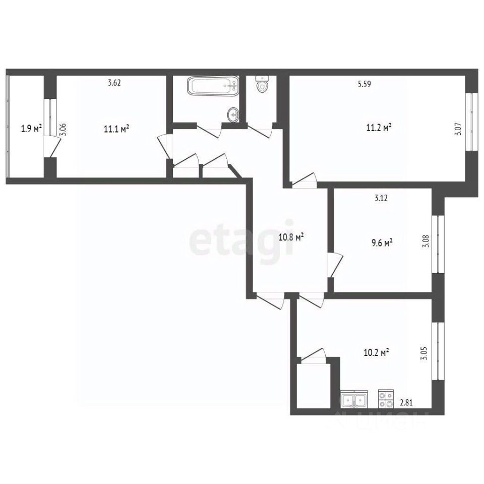 • общая площадь: просторная планировка с изолированными комнатами;