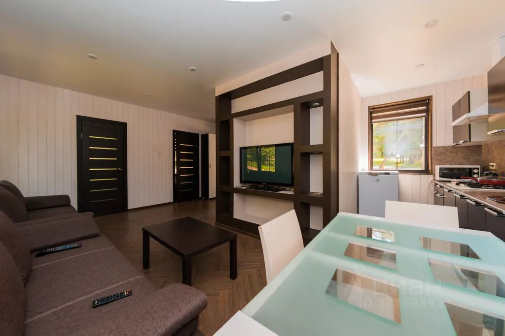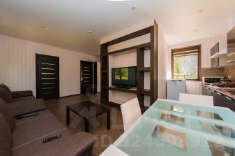 Дом площадью 50м2 оснащен всеми удобствами: кухней-гостиной с большим угловым диваном (раскладывающимся), двумя диванами-кроватями, двумя спальнями(в одной из них двуспальная кровать, в другой - полутораспальная),, большим плазменным телевизором со спутниковым ТВ, санузлом (туалетом, душем, раковиной), холодильником, микроволновой печью, плитой, чайником, столовыми приборами и кухонными принадлежностями. Также в доме имеются полотенца, постельное белье. Дом оборудован большой террасой с обеденной зоной, с видом на природу и бассейны с форелью. В доме имеется хорошая звукоизоляция и отопление. Размещение домашних животных допускается за дополнительную плату.