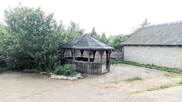 Мангальная зона с беседкой и садовой мебелью.