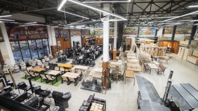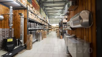 Расположен на пересечении двух наиболее оживлённых улиц. По одной располагаются главные строительные магазины города (в рамках крупного строительного рынка), по другой расположены основные автосалоны города. На данный момент в здании располагается магазин строительных материалов. Удобное транспортное расположение, малая удалённость от центра города и ключевых районов.