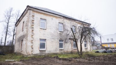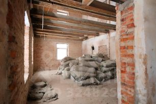 Здание на начальном этапе реконструкции, заменены окна, убраны полы на двух этажах, стены очищены от декоративных покрытий.