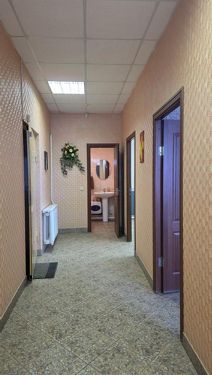 Пол в здании выложен плиткой. Офисная часть здания с отделкой (на фото).