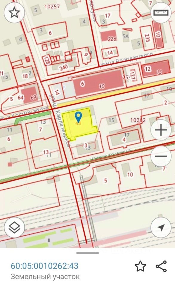 Отличное расположение участка, рядом: ЖД и автостанция, рынок, магазины Пятерочка, Великолукский мясокомбинат и многие другие.