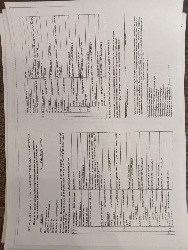 Земельный участок для строительства гаража площадью 18 кв.м, к/н 12:05:0209001:407; Здание нежилое 18 кв.м, собственность, к/н 12:05:0209001:1003, расположенные по адресу: г. Йошкар-Ола, ул. Труда, д.29, ПК Северный, гараж 354, принадлежащие должнику Володину Р.В.