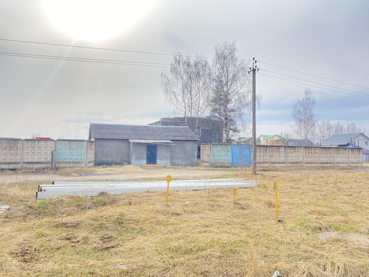 - 5 КН (цифра 5 на плане, 60:18:0112601:319) - здание гаражных боксов 405,9 кв. м . Разделено на пять отдельных боксов с индивидуальным въездом. Площадь боксов: 62,9; 66,9; 64,5; 64,5 и 138,4 кв. м . Высота потолков 5,35 м, подключено к э/э, нет водоснабжения, теплоснабжения и канализации.