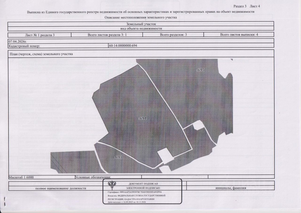 Земельный участок из земель категории земли сельскохозяйственного назначения, находящийся по адресу: Псковская область, муниципальный район Палкинский, западнее, севернее и восточнее деревни Юматово с кадастровым номером 60:14:0000000:694, общей площадью 206275 кв.м для сельскохозяйственного производства.