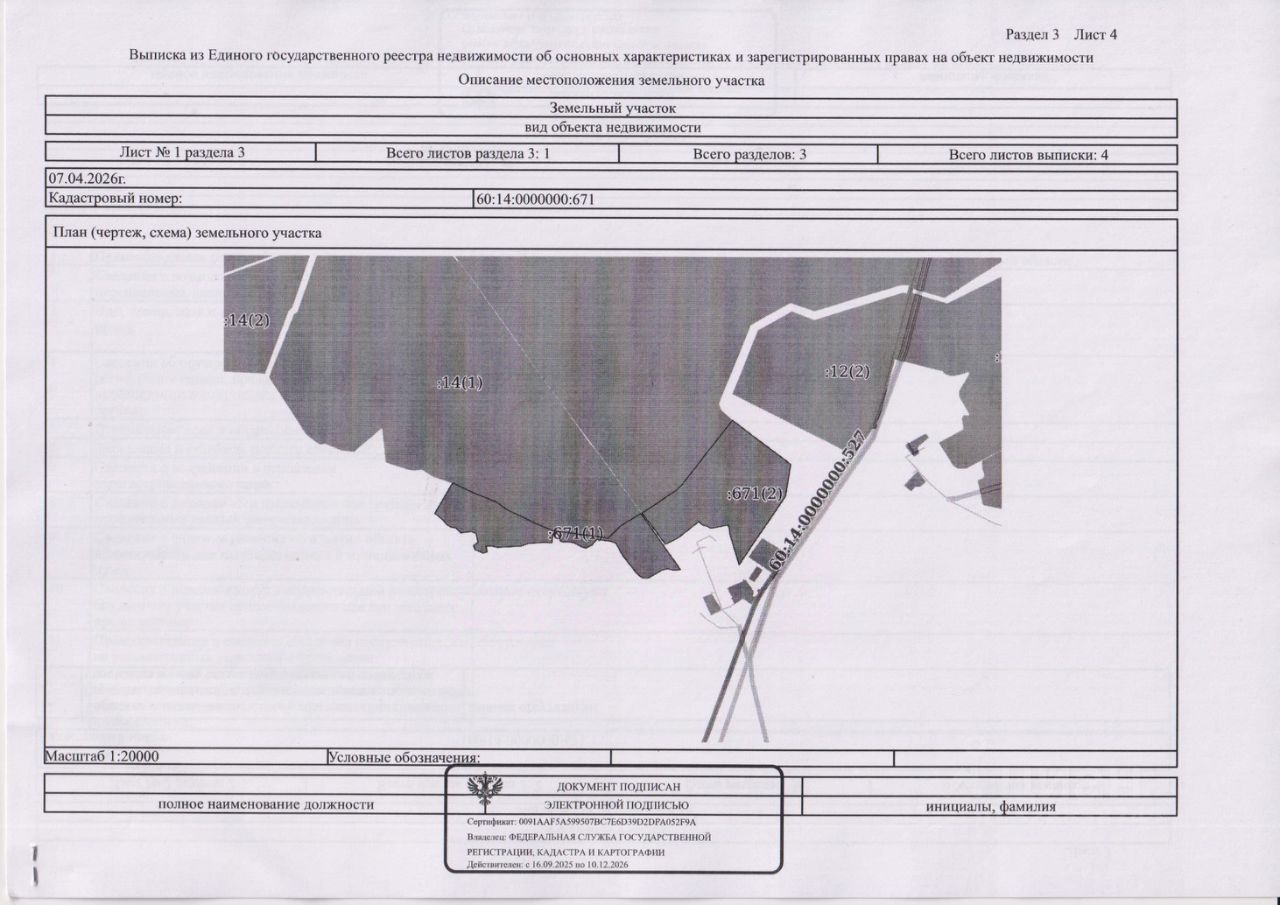 Земельный участок из земель категории земли сельскохозяйственного назначения, находящийся по адресу: Псковская область, Палкинский район, СП "Палкинская волость", первый контур - в 8 м западнее д. Гривки, второй контур - с северо-западной, северной и северо-восточной сторон д. Гривки с кадастровым номером 60:14:0000000:671, общей площадью 371070 кв.м для сельскохозяйственного производства.