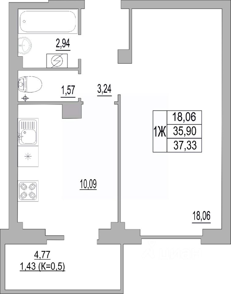 36,84 м²