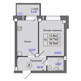Продаётся 1-комнатная квартира в сданном доме (Дом 2), срок сдачи: III-кв. 2025, общей площадью 35.9 кв.м., на 1 этаже. Новый жилой комплекс "Гармония" от застройщика "ГК Руст" расположен по адресу: Россия, Псковская область, Псковский район, Завеличенская волость, деревня Борисовичи, Венская улица