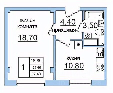 1-комн. квартира, 37,4 м²