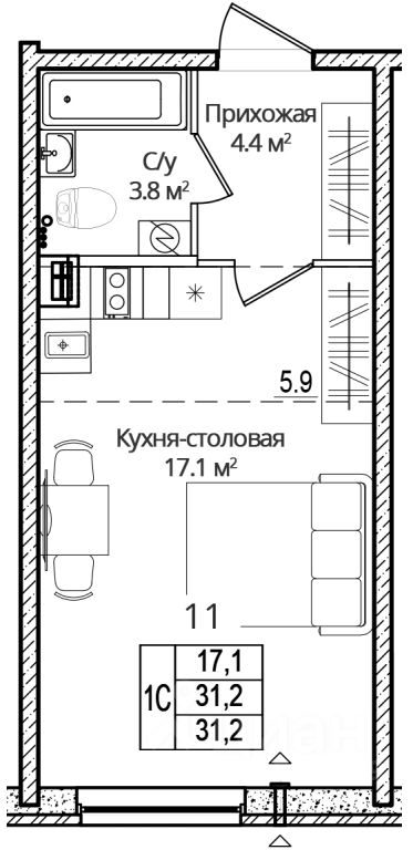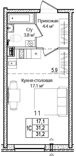 Продается студия, 31.20 кв. м, по адресу Россия, Псковская область, г. Псков, ул. Дмитрия Яковлева, 6. Этаж 2/16.