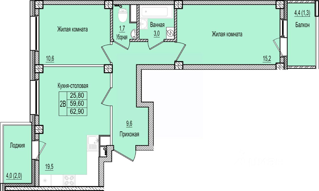 62,9 м²