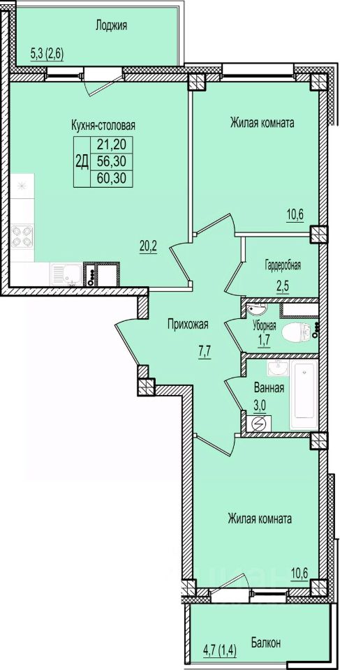 60,3 м²
