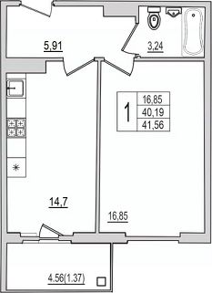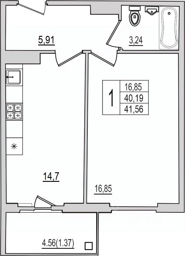 Продается 1-комнатная квартира 26 в строящемся доме на Рижском проспекте.