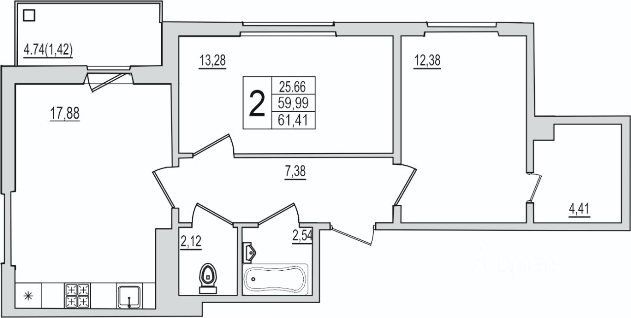 Продается 2-комнатная квартира 42 в строящемся доме на Рижском проспекте.