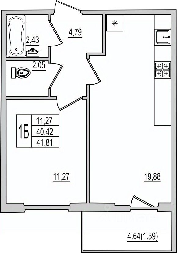 Продается 1-комнатная квартира 122 в строящемся доме на Рижском проспекте.