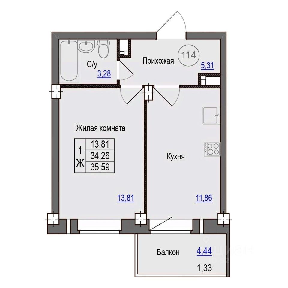 Продаётся 1-комнатная квартира в сданном доме (Дом 2), срок сдачи: III-кв. 2025, общей площадью 35.59 кв.м., на 6 этаже. Новый жилой комплекс "Гармония" от застройщика "ГК Руст" расположен по адресу: Россия, Псковская область, Псковский район, Завеличенская волость, деревня Борисовичи, Венская улица